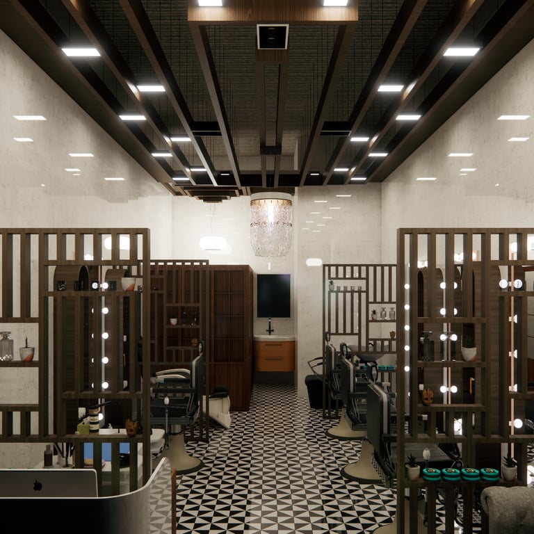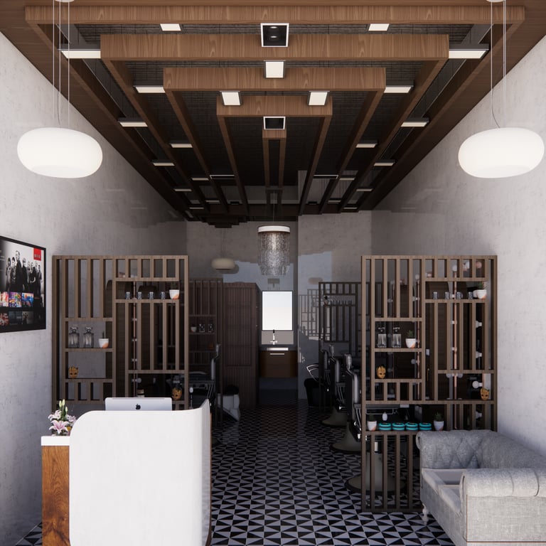 Repurposing the existing wooden slats at the site in the design. Creating different sections/services in a tight 360 sqft space.