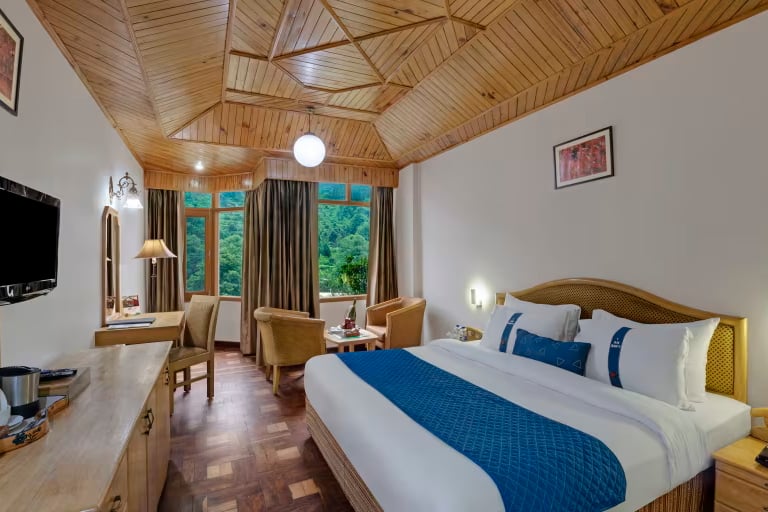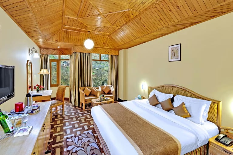 The first 5 Star Hotel in Himachal, Executed with finest quality of craftsmanship in wood, sourced locally from the pine forest